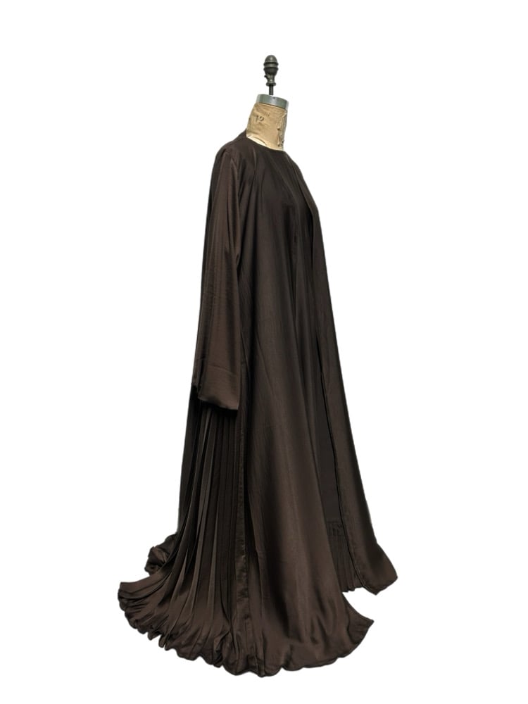 3 piece set. Open shoulder abaya with pleated sides, comes with underdress and Shayla. Please note this item cannot be hemmed.