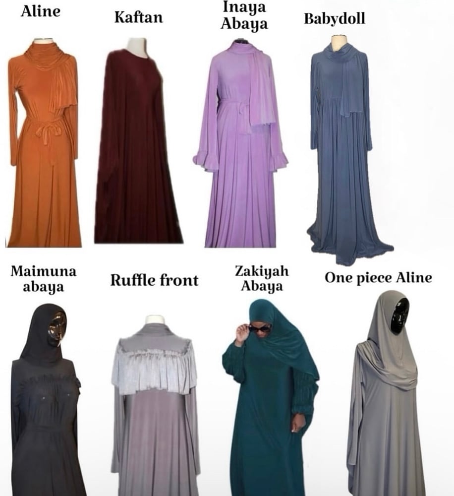 Height 5’7 shirt size medium. One black Aline with Shayla. One navy Aline with overhead khimar. One plum purple Aline with Shayla. Please add pockets.