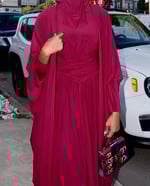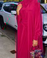 3 piece set. Comes with an open shoulder abaya, short sleeve aline, and a Shayla. Aline garment has a belt attachment that can be wrapped multiple ways. Material is ity.
