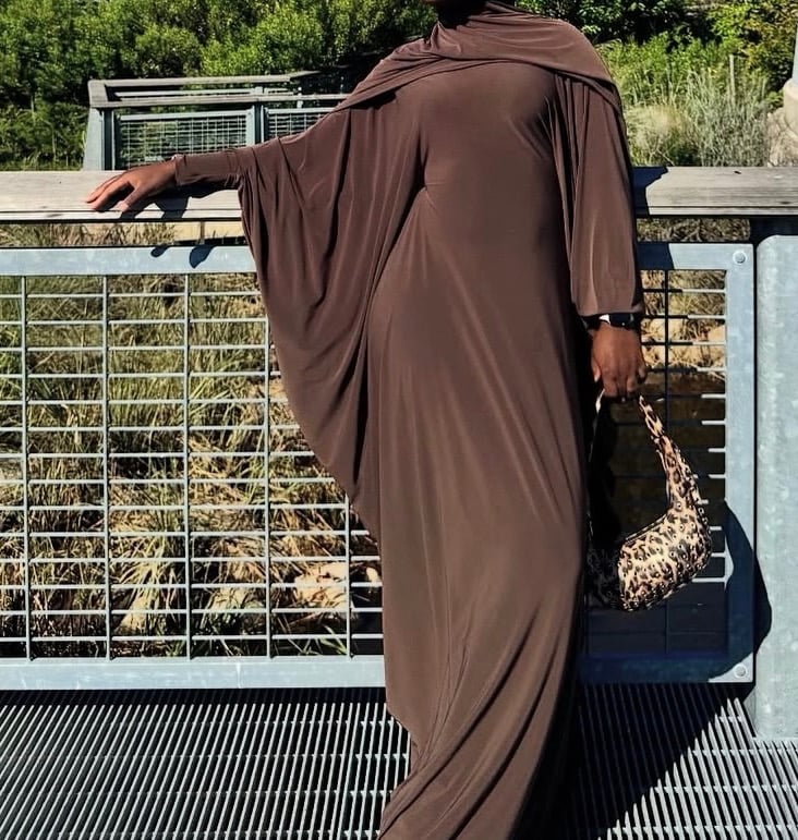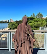 Shoulder abaya with adjustable ties, for a customizable fit and desired look. Crafted from ITY fabric. Comes with a Shayla.