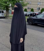 Shoulder abaya with adjustable ties, for a customizable fit and desired look. Crafted from ITY fabric. Comes with a Jilbab khimar that can be worn up to cover the face or down.